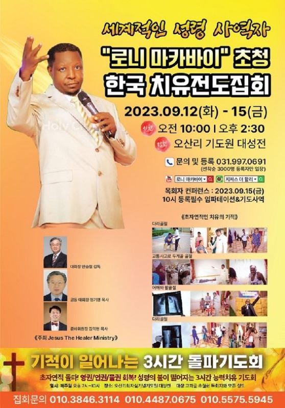 2023 로니 마카바이(Ronnie Makabai) 목사 원준상선교사 한국 치유 전도 대성회(Korea Conference)가 진행중입니다