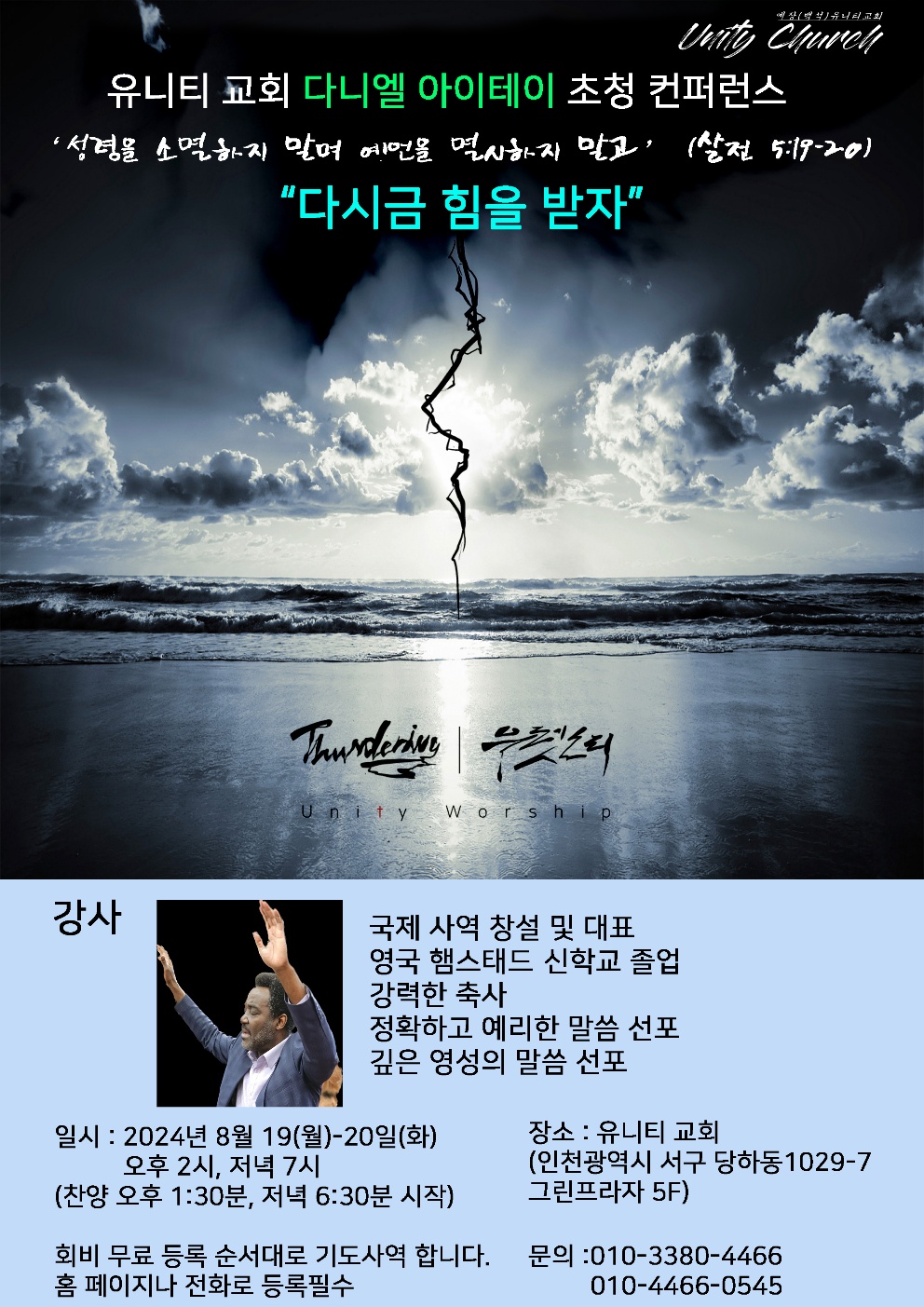 유니티교회에서 다니엘 아이테이(Daniel Aitey) 목사 초청 컨퍼런스가 8월 19일(월)~20일(화)까지 있습니다