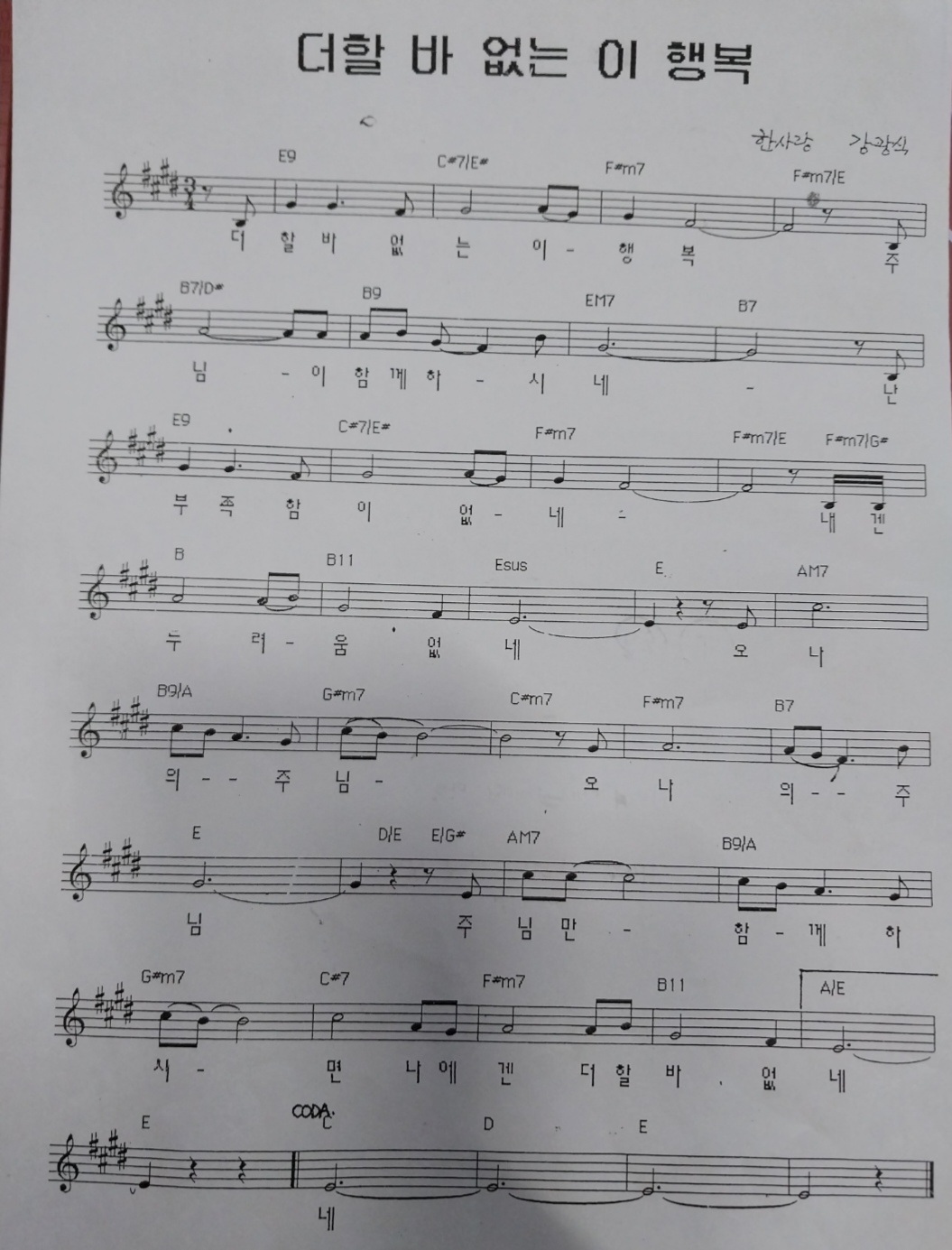 더할 바 없는 이 행복 -한사랑 강광식목사