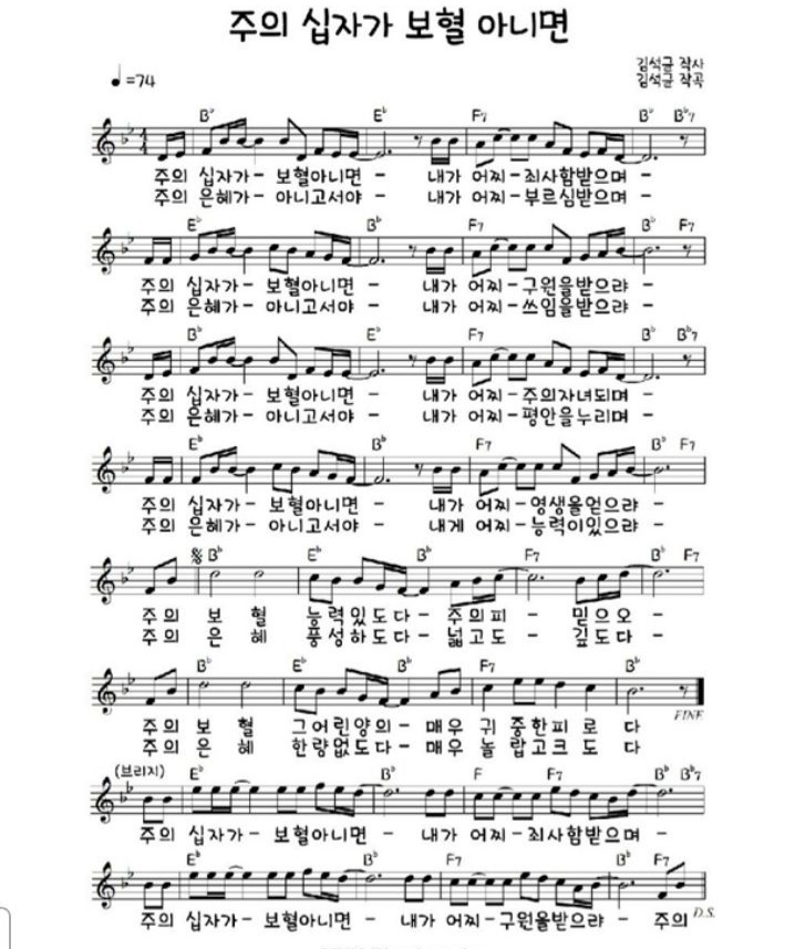주의 십자가 보혈 아니면 내가 어찌 죄사함 받으며